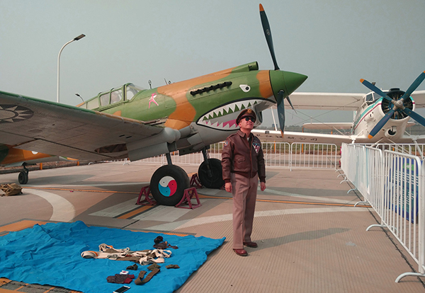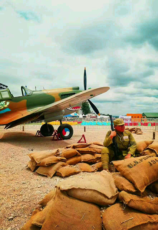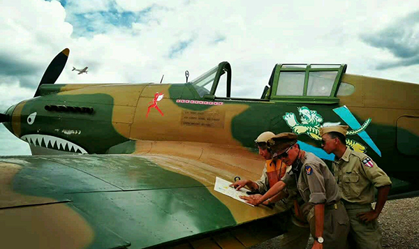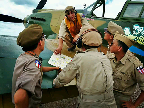 抗戰(zhàn)情景復原, 抗戰(zhàn)歷史研究者愛好者在P-40C機前展示原裝飛行員服裝和裝具